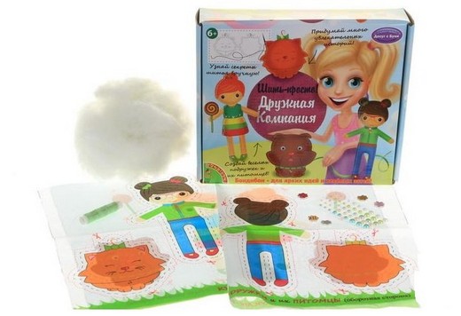 Набор для творчества Дружная компания позволяет сшить две куколки и двух очаровательных животных.