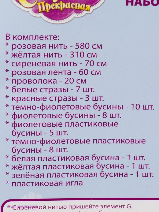 Состав набора: вырезанные части для сумочки, нитки, пластиковая безопасная иголка и аксессуары.