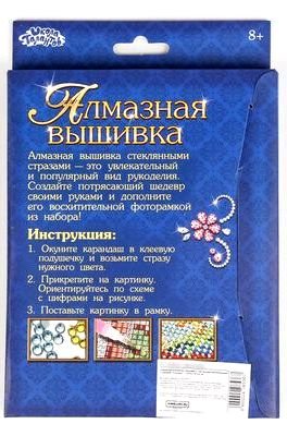 Разложите кристаллики по номерам с помощью карандаша по указанной схеме, полностью заполнив полотно. Тканевая основа с точечным клеевым покрытием будет надёжно удерживать стразы. На картине уже обозначены необходимые оттенки. Часть картины предстоит заполнить стразами, другая часть напечатана на холсте-основе — такое изделие легче и быстрее создать. Поэтому набор подойдёт для тех, кто впервые пробует свои силы в этой технике или любит быстро добиваться результата.