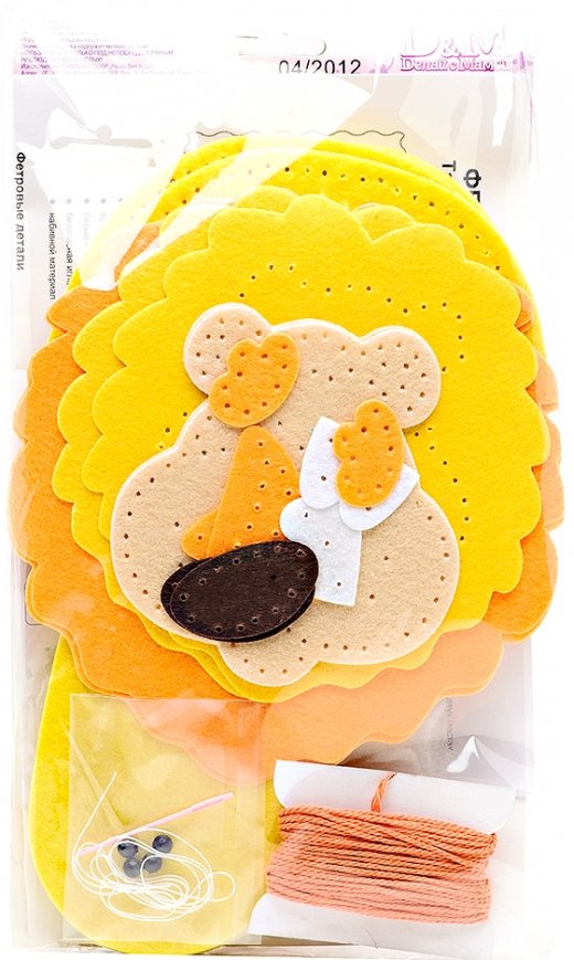 В наборе есть все, чтобы ребенок самостоятельно мог сшить тапочки с удивительным дизайном. Фетровые детали уже вырезаны и имеют отверстия, поэтому при шитье даже не придется прилагать особых усилий. В комплект включили безопасную иголку, которой невозможно уколоть пальчик. Следуя подробной инструкции, сделать тапочки сможет даже ребенок семи лет. Тапочки в виде обаятельного льва послужат удивительным подарком, их смело можно использовать по назначению, ведь они получаются очень прочными и практичными.!