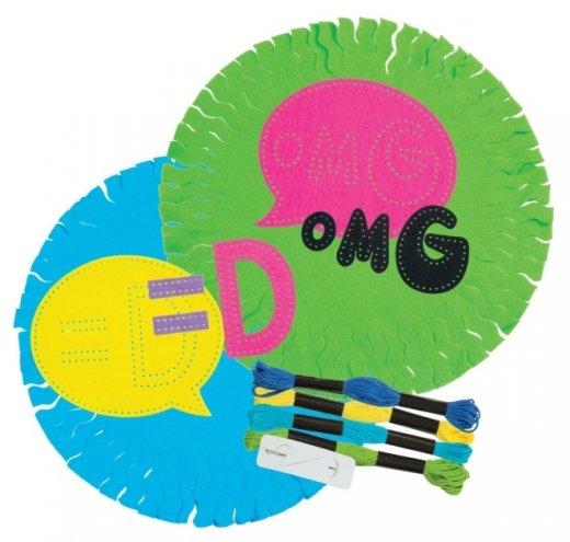 Состав набора: 2 кусочка флисовой ткани, вырезанные формы, мулине(4 цвета), иголка и инструкция.