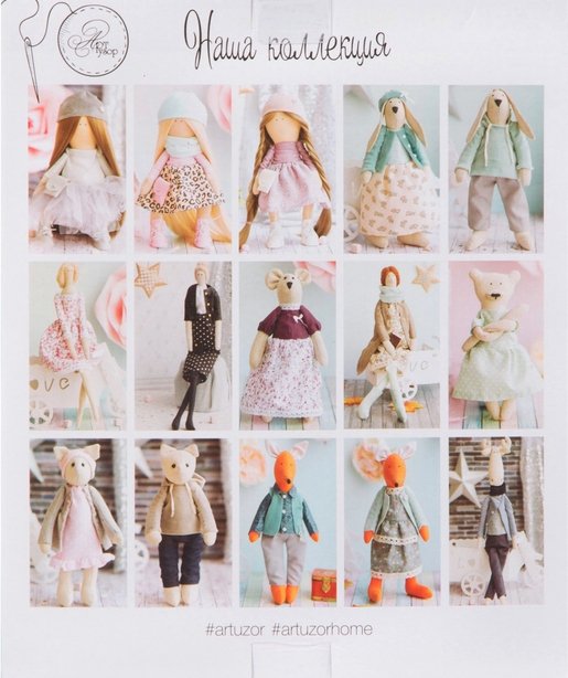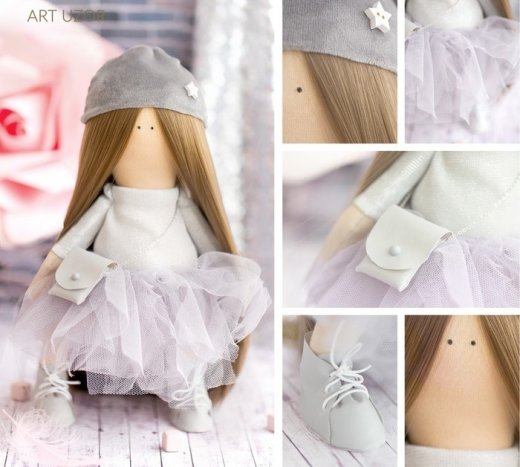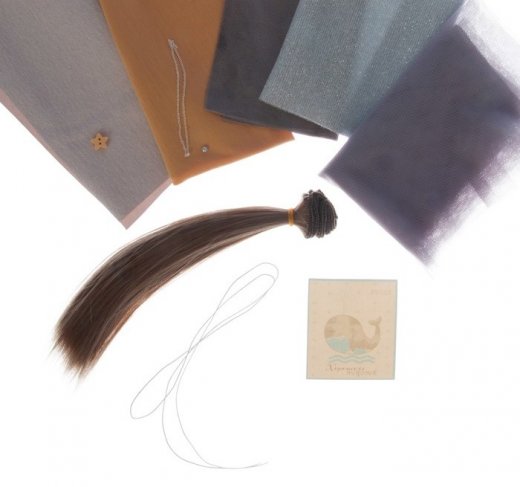 Состав набора: ткань, выкройки, декор, волосы, инструкция.