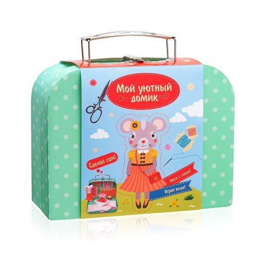 Набор «Мой уютный домик» откроет для детей мир увлекательного рукоделия. Первый опыт шитья будет не слишком сложным, а мягкая кукла Мышка обязательно получится красивой. Набор продается в чемоданчике со стильным декором. Дети могут носить его в детский сад или в школу, брать с собой на прогулку или хранить внутри свои игрушки. В чемоданчике можно сделать дом для сшитой куклы. В комплекте есть детали деревянной мебели, которую можно собрать без клея и гвоздей, а также наклейки для украшения интерьера. Вы можете добавить в свой домик любые предметы декора и сделать его по-настоящему неповторимым.