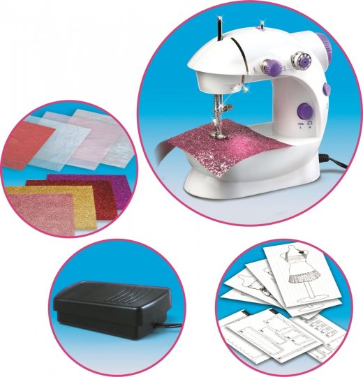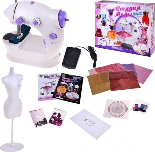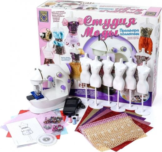 В набор "Студия мода" входит настоящая швейная машинка многоразового использования, работающая с ножной педалью и без нее. В комплекте вы найдете эскизы, выкройки моделей, манекены, ткани разных фактур и декоративные элементы — все, чтобы попробовать себя в роли кутюрье. Не стоит забывать, что швейная машинка предназначена для шитья, а не для игры. Весь процесс должен осуществляться в присутствии взрослых, ведь их контроль просто необходим. Прежде чем приступить к шитью, нужно обязательно внимательно прочесть инструкцию по эксплуатации.