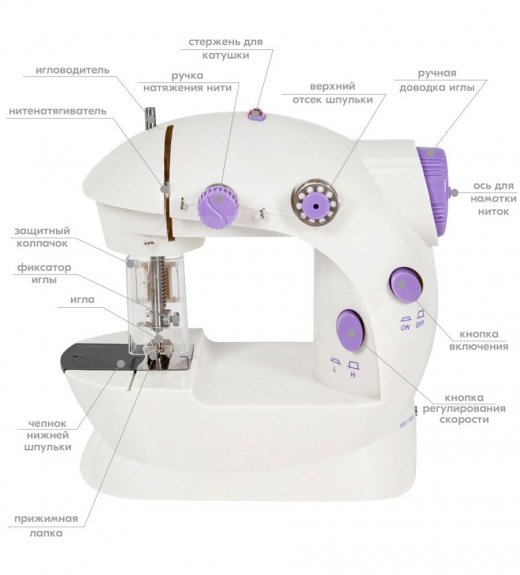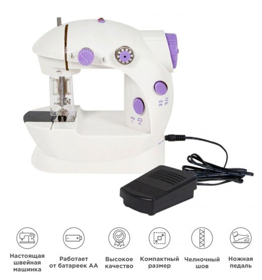 Швейная машинка работает от 4 батареек типа АА (в набор не входят).
