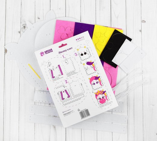 Состав набора: инструкция, заготовки из фетра с разметкой для удобного сшивания, игла, нити.