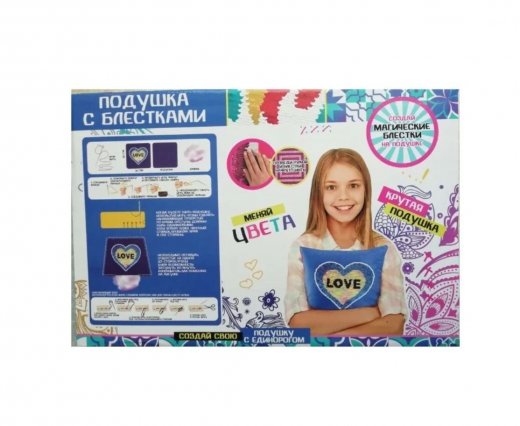 Детский игровой набор "Подушка с блестками Сердце". Отличный подарок на любой праздник. Детский набор развивает творческие навыки и фантазию ребенка. Девочка сможет создавать свою ультрамодную подушку с блесками, которые меняют цвет. Выбирайте понравившийся рисунок и делайте свою подушку! Подробная инструкция на коробке покажет все шаги для получения лучшего результата.
