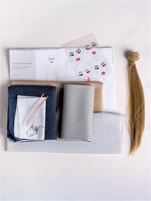 Состав набора: ткань,выкройки,волосы-трессы,декоративная кожа,термонаклейка,картон,декор,инструкция.