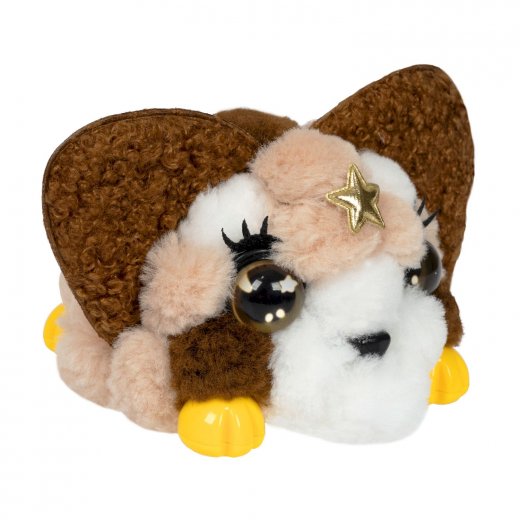 Прикрепите пушистые кисточки к основанию, украсьте аксессуарами из набора - глазками, ресничками, сияющей звездочкой и котёнок готов.