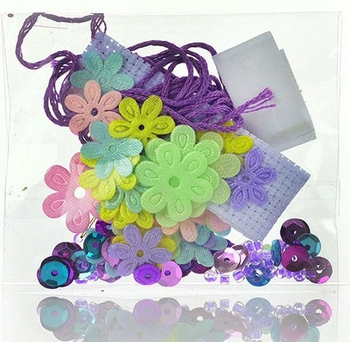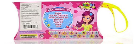 В наборе: бисер, основа для браслета, блёстки, цветочки, липучка, нитки, игла