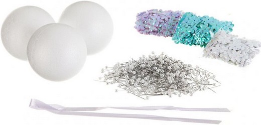 Состав набора: 3 шара, пайетки с крепежами, ленточки.