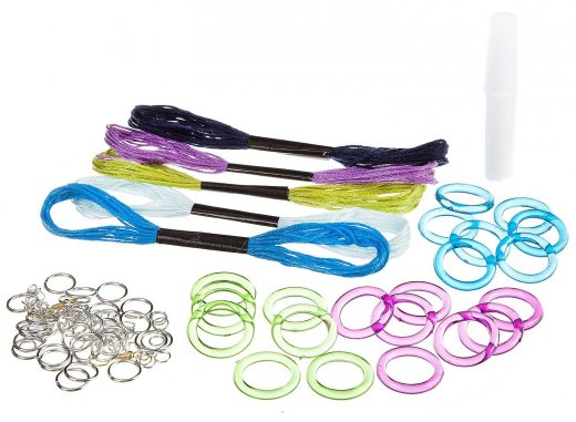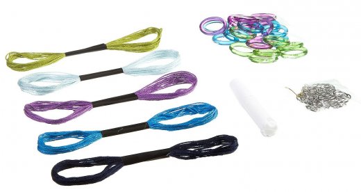 Состав набора: разноцветные кольца, заготовки для 2 видов украшений.