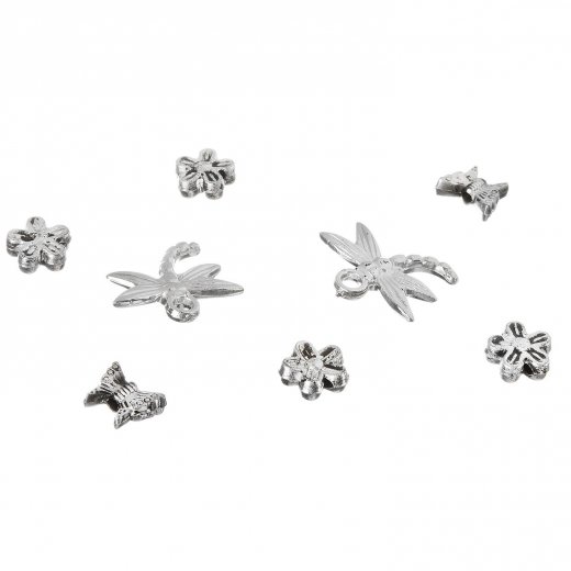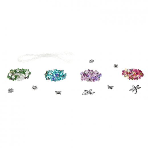 Состав набора: пластиковые бусы в ассортименте, 8 подвесок-шармов, 5 металлических застежек, леска, инструкция.