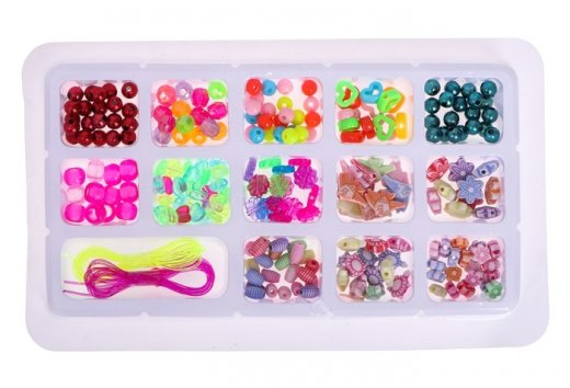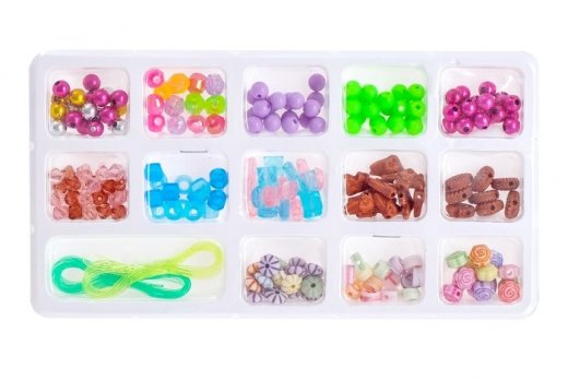 Восхитительный набор включает в себя бусины разных цветов и различной формы. С таким набором можно каждый день создавать новые украшения и демонстрировать подругам. Маленькие модницы могут проявить всю свою фантазию в плетении невероятных браслетов, колечек и много другого. Также девочки могут занять свой досуг и весело провести время в компании подруг.