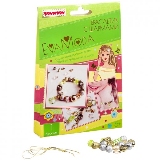 Необычный набор для творчества "браслетик с шармами" из серии Eva Moda от торговой марки Bondibon поможет юной рукодельнице самостоятельно создать невероятно красивый браслет своими руками! В наборе золотистые и серебристые шармы, сверкающие зеленые бусины и фурнитура для создания милого браслета, который подойдет к любому наряду и случаю!