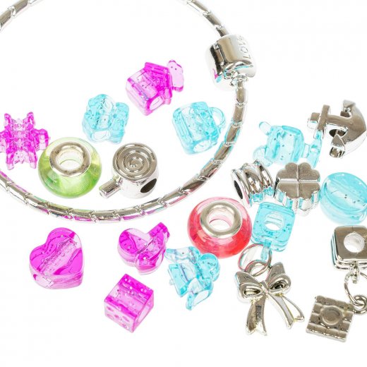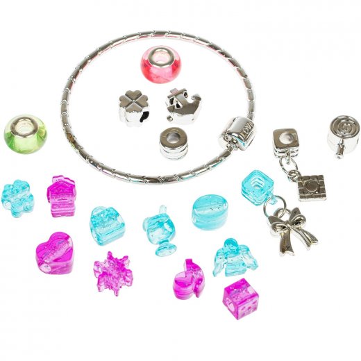 Состав набора: 19 элементов (1 браслет, 2 цветные бусины, 2 подвески, 14 бусин-чармов).