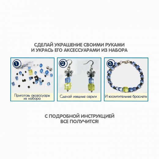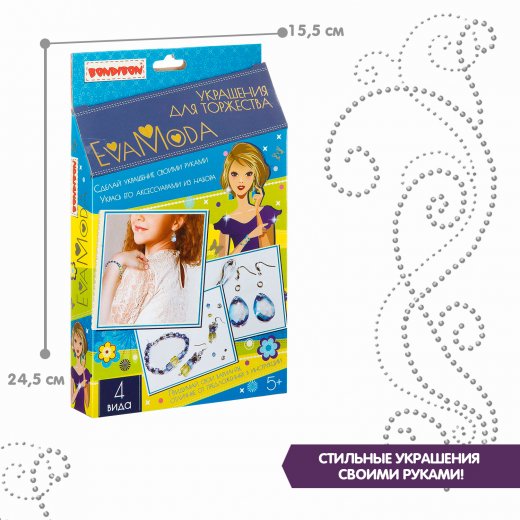 Украшения для торжества должны быть особенными - яркими, сверкающими и неповторимыми! Именно поэтому Бондибон создал набор, в котором есть всё для создания необыкновенных праздничных украшений: блестящие стразы, фурнитура для украшений, очаровательные серебристые подвески и инструкция по сборке аксессуаров. А можно проявить фантазию и создать нечто своё.