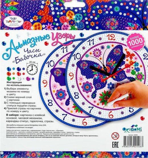 Купить Алмазные узоры Часы Бабочка в Новосибирске Вы можете в магазине развивающих и настольных игр "Игры Почемучек"