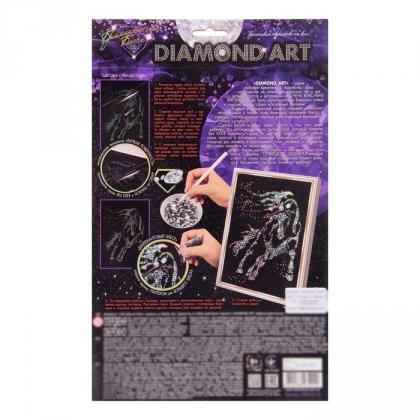 На заготовку нанесен липкий слой, который позволит без клея закрепить стразы, а цветовая схема, делает работу очень простой и интуитивно понятной! Специальный карандаш-аппликатор для захвата и расстановки страз, поможет с легкостью расставить «алмазы» по своим местам. Итак, берем картину, стразы и глиттер, и приступаем к созданию сияющего шедевра, который станет не только красивым украшением Вашего дома, но и бесценным подарком близкому человеку!