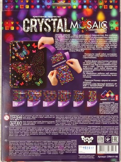 Состав набора: картинка-основа, набор самоклеящихся кристаллов.