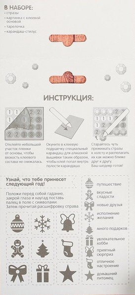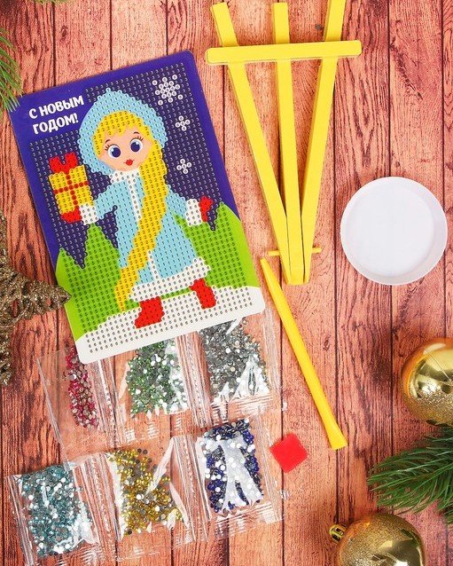 Состав набора: картина-основа, стразы, мольберт, карандаш-стилус, ёмкость для страз, клеевая подушечка.