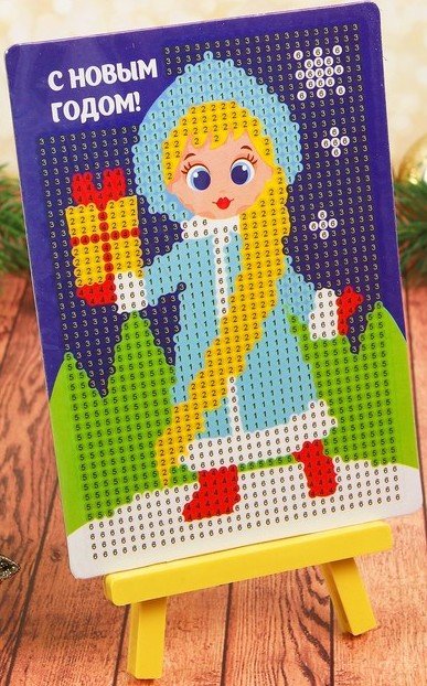 Алмазная мозаика — это увлекательный вид творчества, который понравится любому малышу! Ребёнку предстоит разложить кристаллики карандашом по пронумерованной схеме, полностью заполнив полотно. Основа с клеевым покрытием будет надёжно удерживать стразы. На ней уже обозначены необходимые оттенки, а цветовая таблица расположена на упаковке. В данном наборе есть небольшой мольберт, с ним готовое творение можно удобно расположить на полке или столе без дополнительных креплений. В таком интересном оформлении сверкающая картина будет выглядеть как предмет искусства.