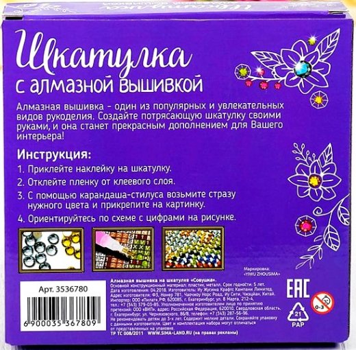 Купить Шкатулку с алмазной вышивкой Совушка в Новосибирске Вы можете в магазине развивающих и настольных игр "Игры Почемучек"
