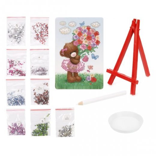 Состав набора: картина из картона (10х15 см), стразы, емкость для страз, подставка, карандаш.