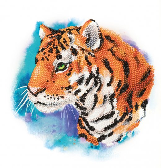 Стразы лекго выкладываются на основу с уже нанесенным клеевым слоем при помощи стилуса, а удовольствие от процесса и простоту работы гарантирует яркий, четко напечатанный рисунок-схема.
