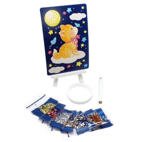 Купить Алмазные узоры Котик на облачке 10 х15 см в Новосибирске Вы можете в магазине развивающих и настольных игр "Игры Почемучек".