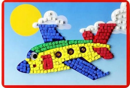 Картина мозаика Самолет – это замечательный подарок для юных любителей творчества и поделок своими руками. С помощью этого набора юный мастер сможет сотворить прекрасную объемную картинку. Нужно лишь всего навсего снять детали мозаики с основы и наклейте по трафарету в соответствии с номерами цветов. Рассмотрев образец, пусть юный мастер сам определит последовательность деталей и, начиная с самого нижнего слоя, приклеит фрагменты из ЭВА, снимая с них защитную пленку.