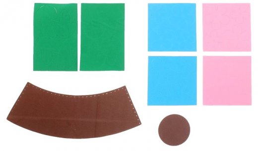 Состав набора: мягкий наполнитель, листы из EVA, элементы цветка, пластиковая игла, лента, шнурок, инструкция.