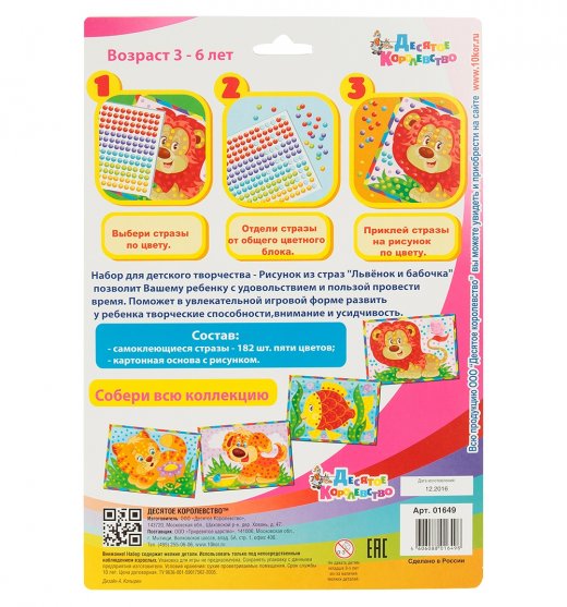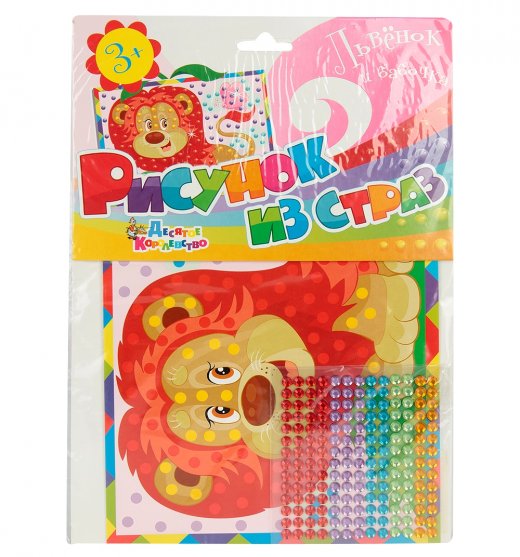 Купить Аппликацию из страз Львенок и бабочка 18*25см; 182страза 3+ в Новосибирске Вы можете в магазине развивающих и настольных игр "Игры Почемучек"