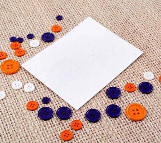 Состав набора: картинка-основа, двусторонняя клейкая лента, пуговицы разных цветов и размеров.