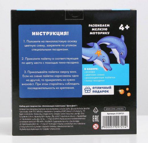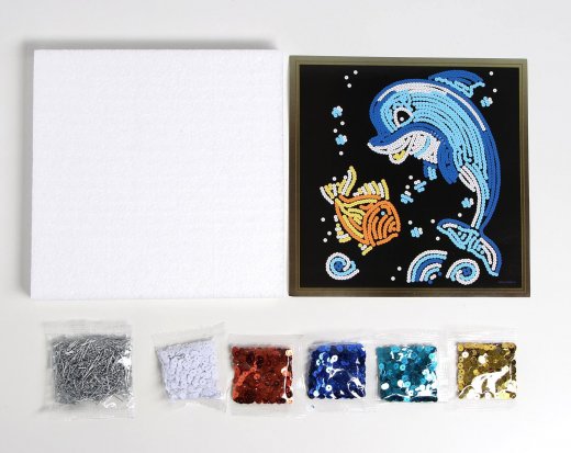 Купить Набор для творчества Аппликация пайетками Дельфин в Новосибирске Вы можете в магазине развивающих и настольных игр "Игры Почемучек"