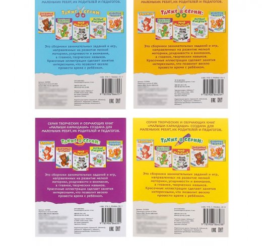 Сборники занимательных заданий и игр направлены на развитие мелкой моторики, усидчивости и внимания, а главное — творческих навыков.