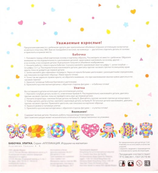 Купить Аппликацию Игрушки на магнитах Бабочка и улитка в Новосибирске Вы можете в магазине развивающих и настольных игр "Игры Почемучек"