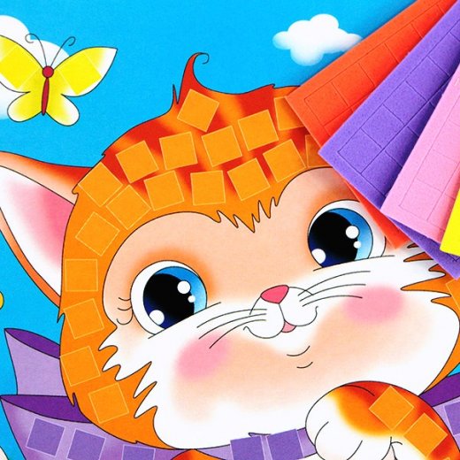 Состав набора: картонная основа (20х16 см) с напечатанным цветным рисунком – 1 шт, самоклеящиеся квадратики (7х7х2 мм) 4 цвета – 250 шт..