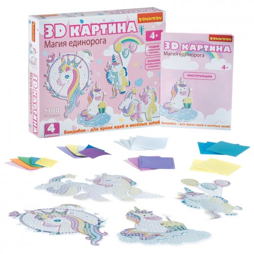 Купить Набор для творчества BONDIBON 3D картина Магия единорога в Новосибирске Вы можете в магазине развивающих и настольных игр "Игры Почемучек