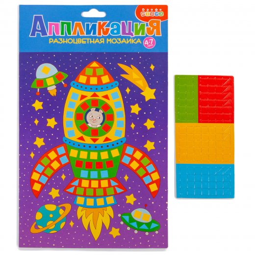 Купить Аппликация Разноцветная мозаика Ракета в Новосибирске Вы можете в магазине развивающих и настольных игр "Игры Почемучек".