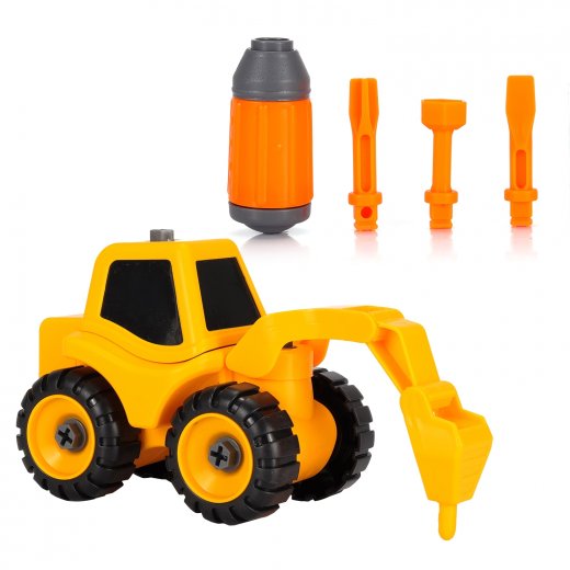 Игровой набор Bebelot "Экскаватор-молот" - это не простой автомобиль. Его главная особенность - разборная конструкция, справится с которой даже ребёнок. Разбирается и собирается машинка с помощью отвёртки с тремя сменными насадками, которые идут в комплекте. Все детали крупные, что делает их более безопасными.