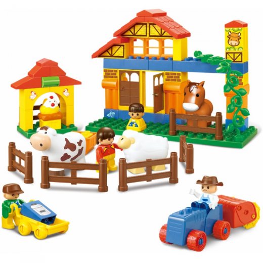 Конструктор Sluban "Веселая ферма 68дет." Один из немногих конструкторов для девочек, хотя и мальчики с удовольствием возводят хозяйственные постройки, размещают в них симпатичных пластмассовых коров, коз и лошадей, а после разыгрывают сценки деревенского быта. Конструктор SLUBAN "Веселая ферма" подойдет для спокойных, любящих природу малышей. С его помощью можно в игровой форме познакомить ребенка с породами домашних животных и просто занять на долгое время увлекательным процессом подбора ярких цветных деталей и создания фермерских угодий.