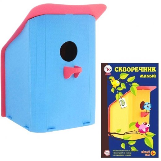 Чтобы собрать домик для птичек, ребятам понадобятся только ловкость рук и взрослый, который в случае необходимости поможет делом и советом. Ничего пилить и строгать не придется - в состав входят детали из полипропилена с готовыми отверстиями.