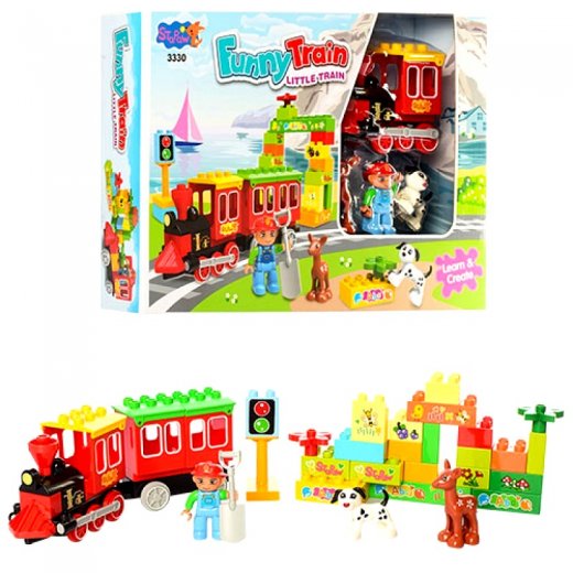 Конструктор Funny Train – не оставит равнодушным любого ребенка. Набор включает в себя детали различной формы из прочного пластика. С помощью такого конструктора ребенок сможет своими руками собрать яркий и замечательный паровозик, и используя прочие аксессуары, входящие в набор, разыграть массу игровых сюжетов. Получив удовольствие не только от сборки конструктора, но и от игры с ним. Все детали имеют увеличенные размеры и яркие цвета.