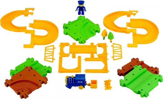 Конструктор «Железная дорога» поможет юному строителю сотворить полотно пути из рельсов. В набор помимо стандартных элементов входит фигурка, с которым маленький фантазёр может разыграть массу игровых ситуаций. Элементы окрашены в нетоксичную краску, которая сохраняет яркость оттенков в течение неограниченного периода использования. Собирать конструктор из качественных деталей - одно сплошное удовольствие для маленьких детей. Все части легко соединяются и разъединяются без особых усилий.