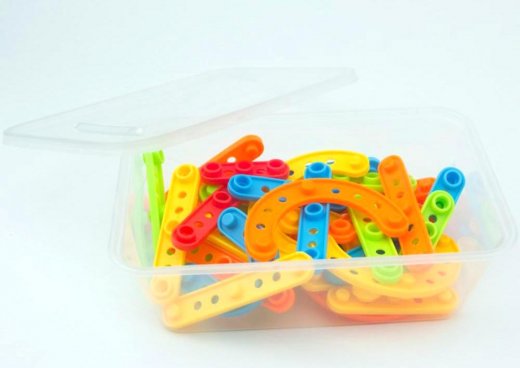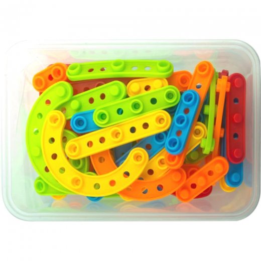 Состав набора: 52 разноцветные детали (5 цветов, 6 форм)