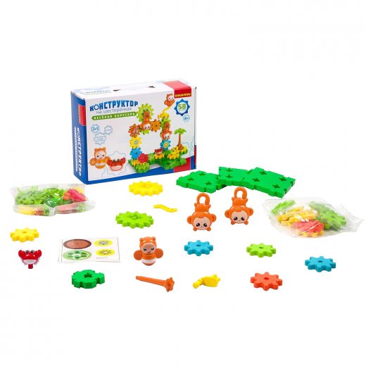 Купить Конструктор на шестеренках Веселая карусель 58 дет Bondibon в Новосибирске Вы можете в магазине развивающих и настольных игр "Игры Почемучек"