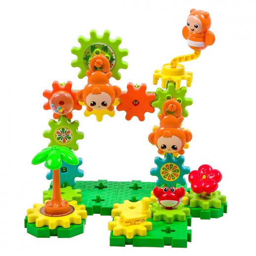 Конструктор на шестеренках - это очень интересная развивающая игрушка, которая подарит малышу минуты радости и удовольствия от игры. Состоит он из блок-пазлов и шестеренок, которые соединяются друг с другом. Вместе детали образуют рабочие механизмы разных сложностей. Основная задача - построить конструкцию для создания подвижного механизма, чтобы при повороте рукоятки все детальки пришли в движение. В набор входит 58 деталей для сборки конструктора и инструкция по сборке.