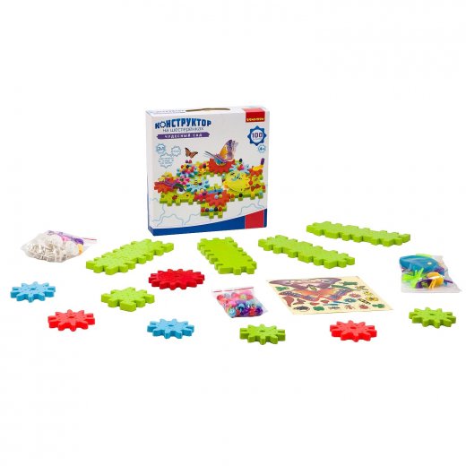 Состав набора: 100 деталей для сборки конструктора, инструкция по сборке.