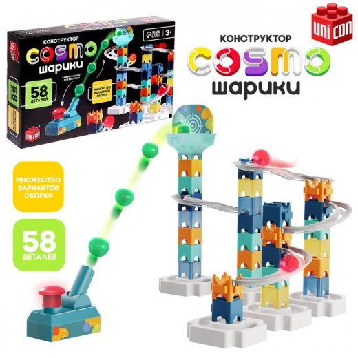 Конструктор марблс «COSMO-шарики» — мир безграничных возможностей. Ребёнок будет создавать уникальные трассы для спуска шариков, придумывая каждый раз новые сооружения.